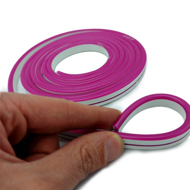 یکی از نقاط قوت برجسته این نئون فلکسی، قابلیت خمشوندگی فوقالعاده آن است. طراحی این محصول به گونهای است که میتواند در مسیرهای منحنی، خطوط شکسته، طرحهای گرافیکی، لوگوتایپها و حتی پروژههای تبلیغاتی پیچیده به راحتی استفاده شود. این انعطافپذیری بالا باعث شده تا طراحان داخلی و نورپردازان حرفهای علاقه ویژهای به نئون فلکسی بنفش داشته باشند.
