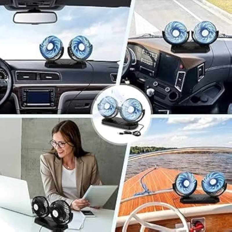 این پنکه از طریق فندکی خودرو تغذیه میشود و با ولتاژ 12 ولت کار میکند. طراحی دوقلو آن به شما اجازه میدهد جهت وزش باد را
