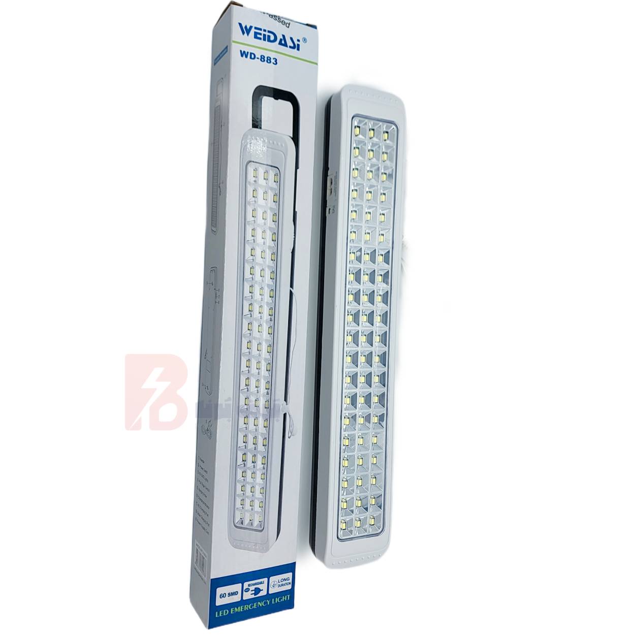 چراغ اضطراری 60 ال ای دی ویداسی WD-883،با ابعاد 43 در 7 سانتی متر یک چراغ اضطراری مناسب برای فضاهای بزرگ می باشد.قابل نصب روی دیوار،یا آویزان کردن است.