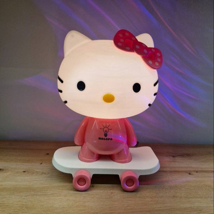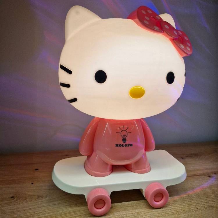 طراحی ظاهری این چراغ خواب برگرفته از شخصیت محبوب کیتی در حال اسکیتسواری است.