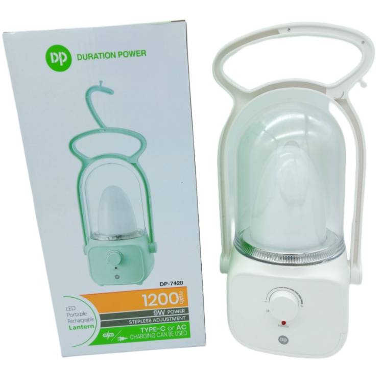 چراغ شارژی فانوسی DP-7420 با باتری 1200 میلی آمپر ساعتی خود در حدود 5 ساعت شارژ برای شما نگه میدارد.